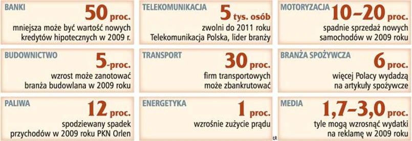 Odpowiedzią części operatorów telekomunikacyjnych na kryzys jest ograniczanie inwestycji. Jak poinformował Krzysztof Kilian, wiceprezes Polkomtelu, przyszłoroczne inwestycje wyniosą ok. 1 mld zł wobec ok. 1,5 mld zł w tym roku. TP na razie nie zakłada cięcia inwestycji, ale planuje ograniczenie zatrudnienia - głównie z powodu spadku przychodów z telefonii stacjonarnej. Za to Netia nie widzi powodów, by z powodu kryzysu obniżać inwestycje. W 2009 roku mają być o 34 proc. wyższe niż w tym roku i wyniosą 355 mln zł.