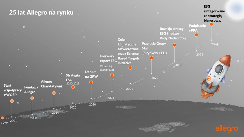 Współczesne Allegro to jednak także firma głęboko zaangażowana w kwestie środowiskowe, społeczne i związane z ładem korporacyjnym (ESG). Cele ESG zostały włączone do długoterminowej strategii firmy i są traktowane priorytetowo. Powiązano je m.in. z systemem premiowym pracowników, co potwierdza ich kluczową rolę w codziennych operacjach.