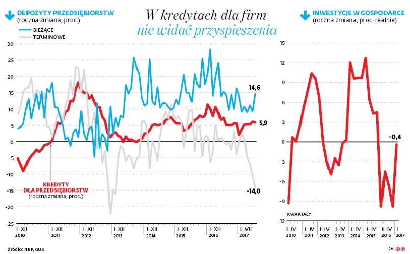Spadek lokat terminowych w firmach może mieć jednak podobne przyczyny, jak w przypadku gospodarstw domowych: niskie oprocentowanie zniechęca do zawierania takich umów (w odróżnieniu od klientów indywidualnych firmy muszą trzymać