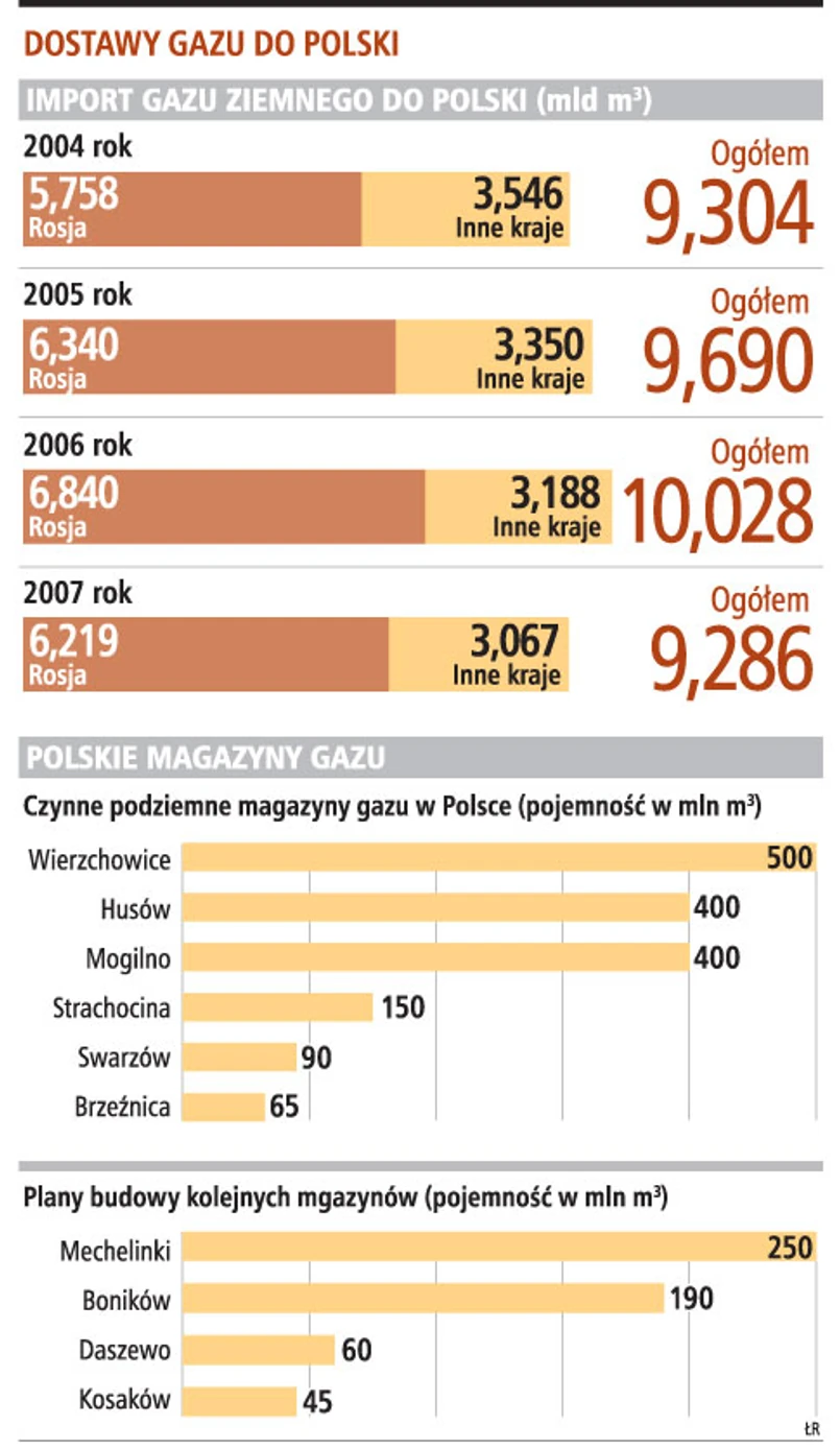 W długofalowej perspektywie skazani jesteśmy w zaspokajaniu swoich gazowych potrzeb na Rosję. Tam bowiem ulokowane jest ponad 25 proc. światowych zasobów gazu. Drugi na tej liście Iran ma ich niecałe 16 proc., zaś trzeci Katar - niecałe 15 proc. Wymieniane często jako alternatywne kierunki dostaw, zwłaszcza jeśli idzie o gaz skroplony (LNG), Nigeria i Algieria są w posiadaniu odpowiednio 3 i 2,5 proc. światowych zasobów. Najbliższa nam Norwegia ma poniżej 2 proc. światowych zasobów, na dodatek intensywnie eksploatowanych. Także brane często pod uwagę takie państwa jak: Turkmenistan, Kazachstan czy Uzbekistan posiadają mniej więcej po 1 proc. światowych zasobów. Udokumentowane zasoby krajowe szacowane są w tej chwili na 110 mld m sześc., zaś zasoby prognostyczne zawierają się w przedziale od 700 do 1200 mld m sześc.