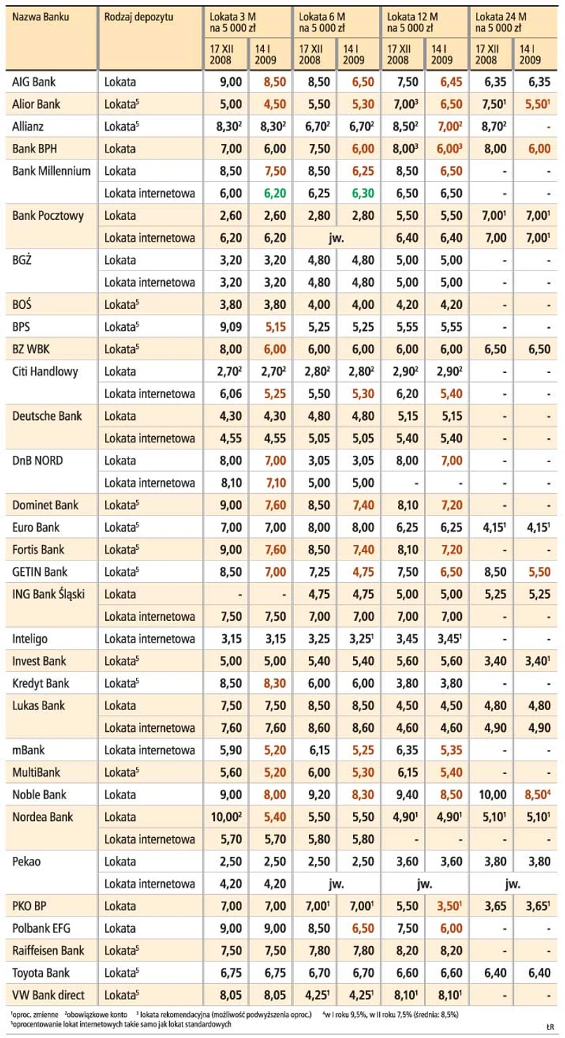 Wpływ na oprocentowanie lokat mają problemy niektórych banków z płynnością. Dopóki rynek międzybankowy nie działa normalnie, wzrost akcji depozytowej jest najprostszym sposobem zdobycia środków, np. na prowadzenie działalności kredytowej. Dlatego niektóre banki odkładają decyzję o redukcji oprocentowania. Jednak pole manewru się zmniejsza, gdyż RPP obniżyła już stopy procentowe NBP o 1 pkt proc. Zdaniem specjalistów spadek inflacji rocznej do 3,3 proc. powoduje, że już w tym miesiącu możemy spodziewać się w NBP stóp niższych o kolejne 0,5 pkt proc. Nawet członkowie RPP twierdzą, że w tym roku główne stopy spadną poniżej 4 proc.