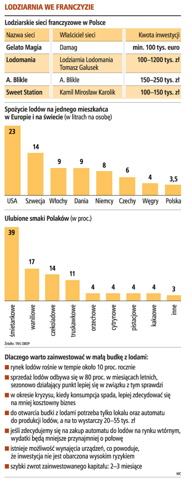 Dodaje, że cała inwestycja zamknie się w kwocie 100-150 tys. zł. To przynajmniej trzy razy mniej niż w przypadku własnej lodziarni. A jeszcze mniej, gdy w lodziarni będziemy chcieli sprzedawać lody własnej produkcji.