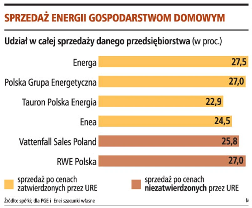 Proszący o zachowanie anonimowości konkurenci Vattenfalla dodają, że po obniżce zejdzie on do poziomu cenowego, jaki już teraz mają niektórzy inni sprzedawcy. Polscy konkurenci twierdzą, że obniżkę cen dla przemysłu umożliwia Vattenfallowi fakt, że stosuje ceny rynkowe - wyższe niż u polskich grup energetycznych - także dla gospodarstw domowych i dlatego nie ponosi na nich strat. Ceny energii dla gospodarstw domowych są w Vattenfall o około 12,5 proc. wyższe niż na przykład w Enion Energia. Vattenfall wprowadził je bez zgody regulatora, a Enion Energia ma ceny zatwierdzone przez regulatora. Polskie firmy stosują się do wytycznych URE, ale podkreślają, że ten poziom jest nieopłacalny.