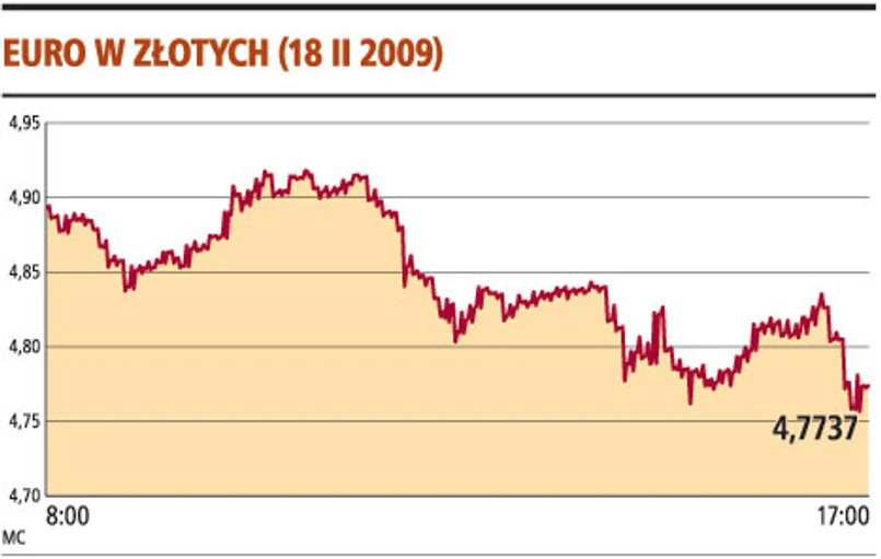 Złoty zaczął zyskiwać już rano, gdy na rynek trafiła porcja pozytywnych informacji. Pierwszym impulsem była deklaracja szefa klubu PO Zbigniewa Chlebowskiego (potwierdzona potem przez premiera), że rząd wprowadzi złotego do korytarza ERM2 bez zmiany konstytucji, a rozmowy w tej sprawie z Europejskim Bankiem Centralnym już trwają. Do tego doszły informacje, że Polska nie będzie objęta procedurą nadmiernego deficytu, choć jest ryzyko, że jej deficyt przekroczy wartość referencyjną na poziomie 3 proc. PKB. Na dodatek Komisja Europejska pozytywnie oceniła polski program konwergencji, uznając, że rząd planuje adekwatne środki fiskalne, by stabilizować gospodarkę.
