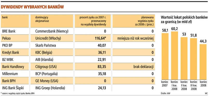 Wysokie należności od swoich zagranicznych właścicieli miały w 2008 roku także m.in. Bank Handlowy i Fortis Bank Polska. Zaangażowanie u swojego włoskiego akcjonariusza (Unicredit) ostatnio zmniejszył natomiast bank Pekao.