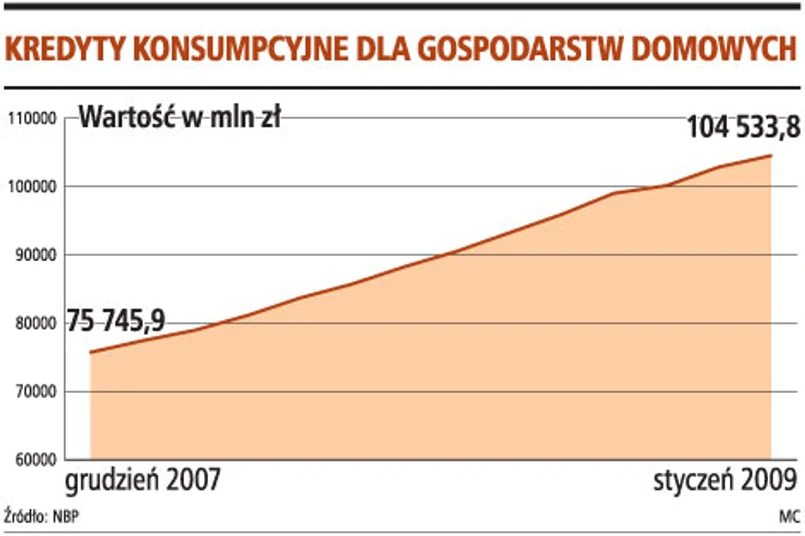 Jego zdaniem problem będzie się nasilał, bo w tym roku limit może zejść do 18 proc. A to będzie oznaczało, że niemal wszystkie banki będą musiały ciąć oprocentowanie kart i kredytów gotówkowych. Przy takim poziomie oprocentowania banki mogą mocno przykręcić kurek z pożyczkami i kredytami na zakup sprzętu RTV czy AGD. Kredyty konsumenckie ze względu na wysoką marżę są dla banków na jednym z najbardziej dochodowych produktów. Wiąże się to z wysokim ryzykiem: banki często nie wymagały zabezpieczeń, a kredyty nawet na 10 tys. zł mogły otrzymać osoby o stosunkowo niskich dochodach. Tak było przynajmniej do drastycznego zaostrzenia polityki kredytowej w ostatnim kwartale 2008 r.