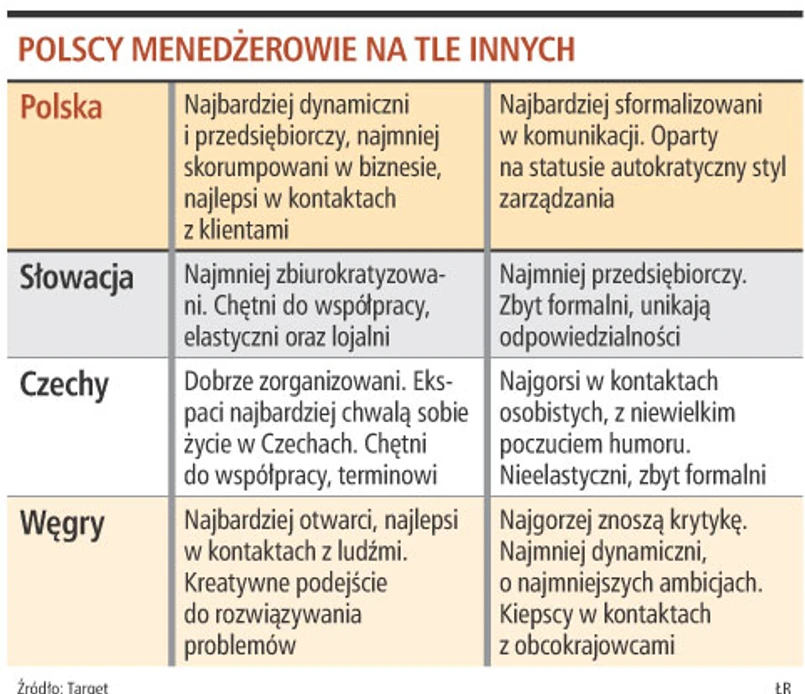 Według raportu firmy TARGET przygotowanego we współpracy z Heleny Business School w Londynie, największymi zaletami polskich menedżerów jest dynamika, pracowitość i przedsiębiorczość.