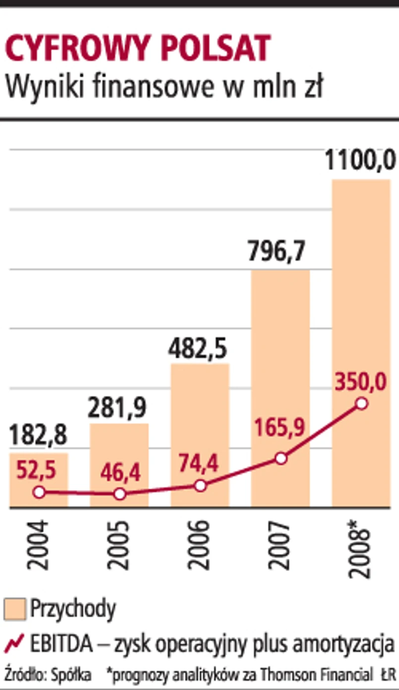 W związku z planowanym uruchomieniem wirtualnego operatora komórkowego firma będzie ponosiła koszty pozyskiwania klientów sieci Halo Polsat. Opóźnienie startu MVNO pozytywnie wpłynie na tegoroczny zysk operacyjny powiększony o amortyzację (EBITDA), bo spółka poniesie mniejsze koszty operacyjne związane z tym projektem. Według agencji Thomson Finance analitycy z banków oferujących akcje CP tegoroczną EBITDA spółki szacują na 350 mln zł, a przychody na 1,1 mld zł. Oznacza to, że liczą na wzrost marży EBITDA do 31,8 proc. z 20,8 proc. w 2007 roku.