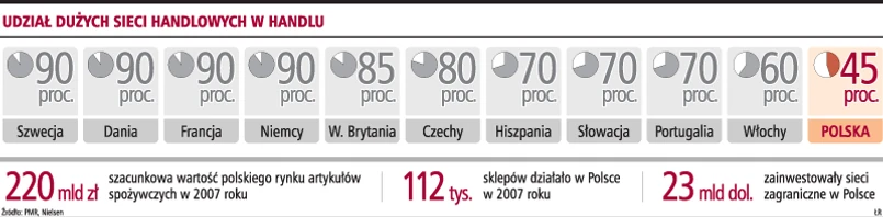 Według prognoz dr Urszuli Kłosiewicz-Góreckiej z Instytutu Rynku Wewnętrznego i Konsumpcji za kilka lat duże, zagraniczne sieci handlowe będą kontrolować nawet 60 proc. polskiego rynku. Do polskich sieci handlowych ma należeć 30 proc. rynku, a udział niezależnych sprzedawców spadnie do 10 proc. Dla konsumenta taki podział rynku nie będzie zły. W przeciwieństwie do wielu zachodnich krajów nadal mielibyśmy dużą konkurencję i to trzymałoby w ryzach zapędy handlowców do podnoszenia cen.