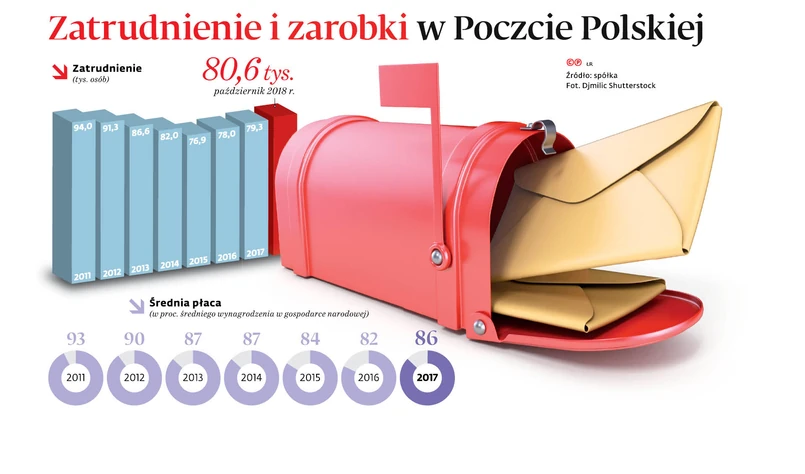 Podwyżki płac, które wpłynęły na finanse spółki tak, że nie można wypłacić premii świątecznej, w 2018 r. zwiększyły przeciętne wynagrodzenie w Poczcie Polskiej o 7,15 proc. Łącznie w latach 2016–2018 pensje w spółce wzrosły prawie o 700 zł brutto, a z uwzględnieniem premii – o ok. 1,2 tys. zł. Pocztowcy startowali z niskiego pułapu, dlatego mimo kilku podwyżek wchodzą w 2019 r. z minimalną płacą na poziomie 2,5 tys. zł brutto – niewiele większą od najniższego możliwego wynagrodzenia w kraju (2,25 tys.).