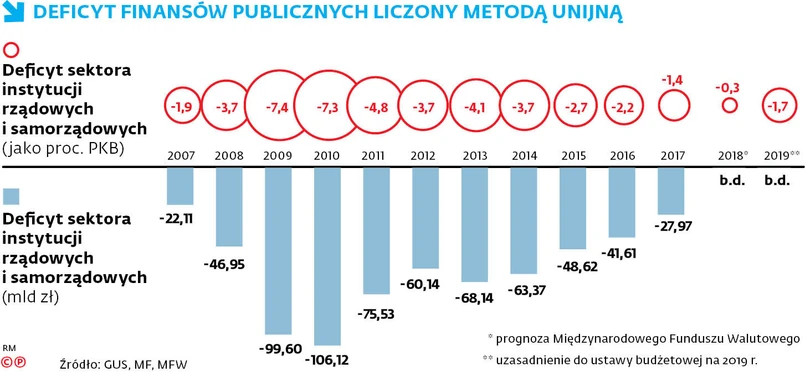 Wzrost deficytu w okolice 3 proc. PKB przy przewidywanej dobrej koniunkturze w 2020 r. nie tylko byłby złym sygnałem dla rynków, ale też narazi nas na problemy z utrzymaniem stabilności finansowej. Rząd przewiduje, że przyszłoroczny wzrost PKB wyniesie 3,7 proc. Mniej optymistyczny jest NBP, który przewiduje dynamikę na poziomie 3,4 proc. To oznacza spowolnienie, ale nadal solidne tempo rozwoju. Zbliżając się zaś – przy relatywnie dobrej koniunkturze – do unijnych limitów deficytu, rządzący ryzykują brak amunicji do stymulowania gospodarki, gdyby sytuacja okazała się gorsza. Wzrost deficytu poniżej 3 proc. naraża nas zaś na otwarcie unijnej procedury nadmiernego deficytu. Sprowadza się ona do konieczności zaciśnięcia pasa w finansach państwa albo poszukania nowych źródeł dochodów, np. w wyższych podatkach. Oba rozwiązania w obliczu spowolnienia mogą być bardzo dotkliwe.