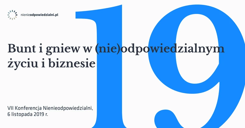 VII Konferencja Nienieodpowiedzialni odbędzie się 6 listopada 2019 r. w Muzeum Historii Żydów Polskich POLIN w Warszawie. Tym razem tematem przewodnim będzie bunt i gniew w (nie)odpowiedzialnym życiu i biznesie. Wydarzenie jest bezpłatne.