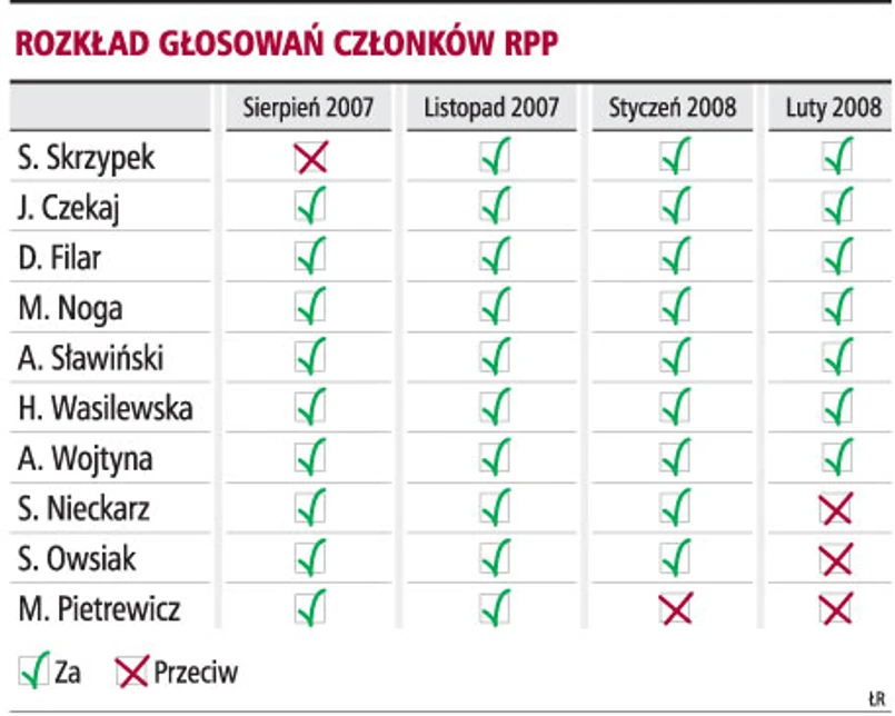 - Ale głosowanie tych trzech członków przeciw podwyżkom nie jest dziwne. Tak samo jak głosowanie Dariusza Filara, Mariana Nogi i Haliny Wasilewskiej-Trenkner, czyli jastrzębi, za podwyżkami - komentuje Maciej Reluga.