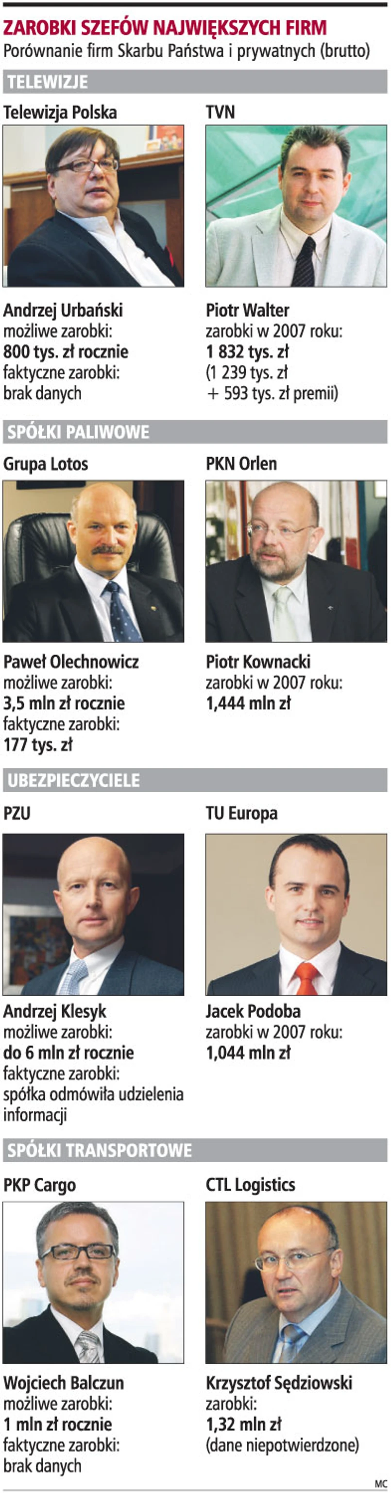 W ubiegłym roku uznawany za menedżera politycznego Piotr Kownacki zarobił ponad 1,44 mln zł. Jego poprzednik, Igor Chalupec, w 2007 roku otrzymał premię roczną w wysokości 1,3 mln zł oraz 3,2 mln zł w ramach odprawy (z zakazem konkurencji).