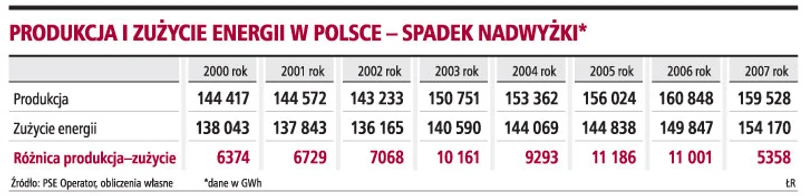 Krajowy system elektroenergetyczny nadal dysponuje nadwyżkami nad szczytowym zapotrzebowaniem na moc, ale ten margines bezpieczeństwa stale się zmniejsza. Jeszcze w 2006 roku nadwyżka mocy nad zapotrzebowaniem wynosiła około 5,3 tys. MW, w 2007 roku spadła do około 4,6 tys. MW, a w pierwszych miesiącach tego roku znowu spadła - do 2-3 tys. MW. Inwestycje w nowe moce zaczął więc rozważać PSE Operator, który jako operator systemu przesyłowego teoretycznie nie powinien się zajmować produkcją energii.