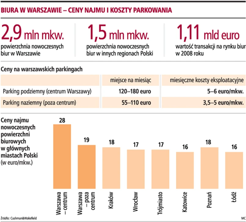 - W tej chwili poziom wolnej powierzchni biurowej nadal utrzymuje się na poziomie średnio około 3 proc. - mówi Jarosław Zagórski. W stolicy pod koniec 2008 r. odsetek pustostanów w ścisłym centrum wynosił 4,1 proc., a poza centrum wynosił zaledwie 2,15 proc. Firmy zaczęły oszczędzać i szukają tańszych biur nawet na peryferiach miasta. Ta tendencja może się nasilać, jeśli kryzys będzie się pogłębiał. Jeśli będzie rosła liczba pustostanów biurowych, to przede wszystkim w ścisłym centrum, gdzie biura są najdroższe. Dodatkowym czynnikiem, który może powodować spadek czynszów, będzie nadpodaż nowych powierzchni biurowych. W 2009 roku będą oddawane do użytku biurowce, których budowę rozpoczęto rok i dwa lata temu.