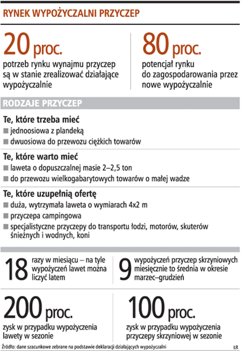 klientów wcale nie jest proste, potrzeba na to co najmniej dwóch lat, by wypracować sobie markę i pozyskać stałych najemców - twierdzi Marcin Polowczuk, przedstawiciel rodzinnej firmy z Wrocławia, zajmującej się wynajmem, produkcją i sprzedażą przyczep.