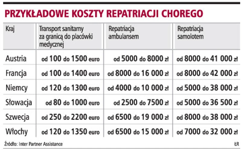 - To istotne, bo koszty transportu lotniczego chorego wynoszą nawet ponad 10 tys. euro. Jeśli koszty repatriacji będą zmniejszały sumę ubezpieczenia, tym mniej będzie można wydać na leczenie - mówi Sonia Kostyszyn, szef grupy medycznej ubezpieczeń podróżnych Inter Partner Assistance Polska.