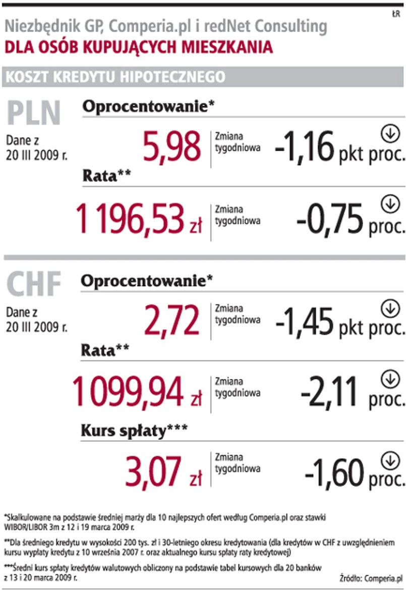 Już kolejny tydzień zmniejszają się raty kredytów hipotecznych. Miesięczne zobowiązanie w żadnej walucie nie przekracza już 1200 zł.