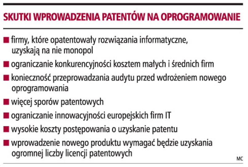 Zalegalizowanie patentów software'owych w Europie przyniesie negatywne skutki dla większości firm IT.