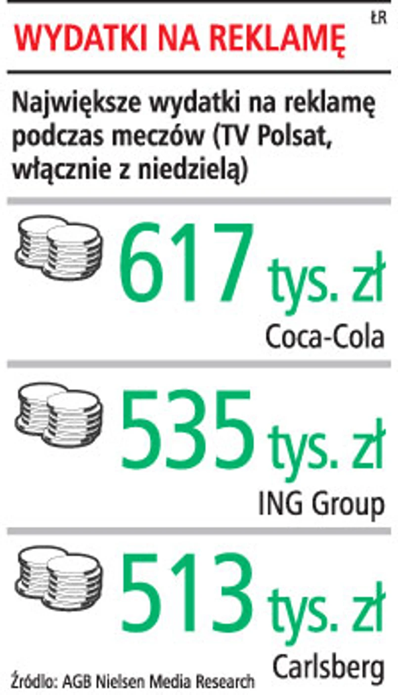 Te osiem minut, a przede wszystkim ranga wydarzenia, jakim są mistrzostwa Europy w piłce nożnej, przyciągnęły też reklamodawców. Najwięcej podczas dotychczasowych meczów wydały na reklamę Coca-Cola (617 tys. zł), ING Group (535 tys. zł) i Carslberg (513 tys. zł). W sumie w Polsacie, Polsacie Sport i Polsacie Sport Extra reklamodawcy wydali w pierwszych dniach na reklamy związane z Euro 2008 aż 14,2 mln zł. Wartość reklam tylko nadawanych wokół meczu Niemcy-Polska wyniosła 8,4 mln zł w Polsacei i 0,4 mln zł w Polsacie Sport Extra.