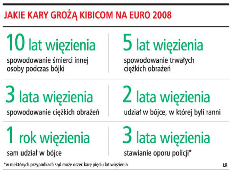 Przed mistrzostwami Europy w piłce nożnej Austriacy zmienili swoje przepisy. Zgodnie z par. 91 austriackiego kodeksu karnego za sam udział w bójce można trafić do więzienia na rok. Surowsze są kary, gdy w wyniku takiej potyczki będą ranni. Gdy sąd udowodni uszkodzenie ciała innej osoby, to odpowiedzialność za czyn jest jeszcze większa.