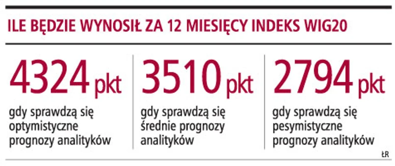 Wyliczana przez GP wartość indeksu WIG za 12 miesięcy wynosi w czerwcu 3510 pkt. To wartość obliczona na podstawie średnich z wycen akcji spółek tworzących ten wskaźnik koniunktury na rynku największych spółek notowanych w Warszawie. W stosunku do maja oczekiwana wartość WIG20 obniżyła się o 68 pkt.