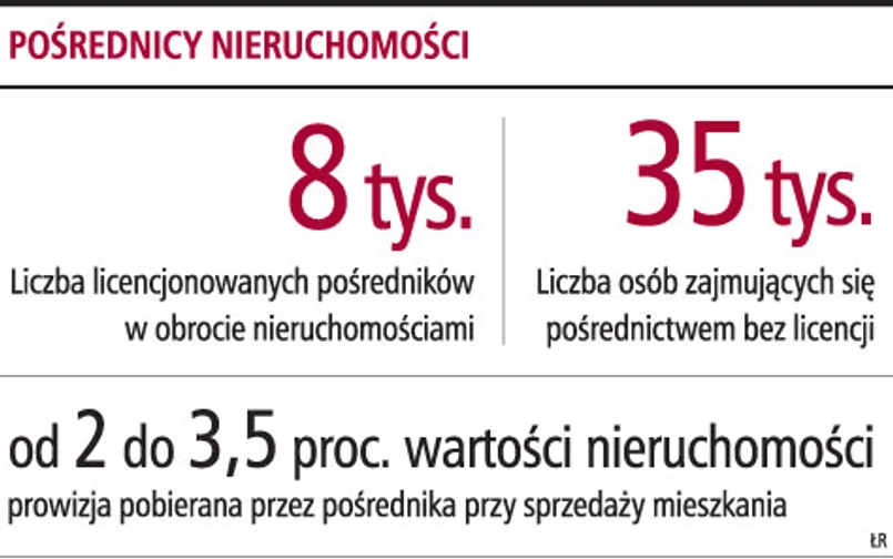- To jest działanie celowe, by nie dopuścić do większej konkurencji między pośrednikami - mówi pan Ryszard, który już kilku miesięcy czeka na przyznanie licencji. W tej chwili prowizja pobierana przez pośredników sięga nawet 3,5 proc. wartości transakcji i jest pobierana zarówno od sprzedającego, jak i kupującego. Są to więc bardzo duże kwoty, ale transakcji na rynku nieruchomości jest w tej chwili niewiele, więc większa liczba agentów oznaczałaby, że te mniejsze pieniądze trzeba by podzielić na większą grupę pośredników.