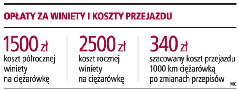 Obecnie przedsiębiorcy wykupują np. roczną winietę za 2500 zł i pojazd z ich floty może swobodnie poruszać się po drogach krajowych. Projekt nowelizacji ustawy zakłada, że płaciliby oni za każdy przejechany kilometr po drogach krajowych i autostradach. W projekcie wskazano, że maksymalna dopuszczalna stawka opłaty za jeden kilometr może wynieść 2,5 zł. Jednak Ministerstwo Infrastruktury, które przygotowało zmiany, szacuje, że opłaty za przejazd ciężarówek powyżej 12 ton mogą wynieść około 0,34 zł za kilometr. Natomiast w przypadku autobusów 0,46 zł. W przypadku TIR-ów koszt przejazdu 1000 kilometrów wyniósłby 340 zł, a pojazdy te pokonują rocznie kilkadziesiąt tysięcy kilometrów lub więcej.