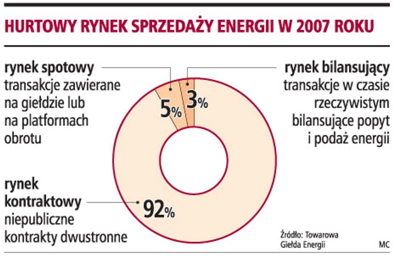 Na razie jest dokładnie odwrotnie. Według szacunków Towarowej Giełdy Energii w 2007 roku w ramach kontraktów dwustronnych zostało sprzedane w Polsce ok. 92 proc. energii.