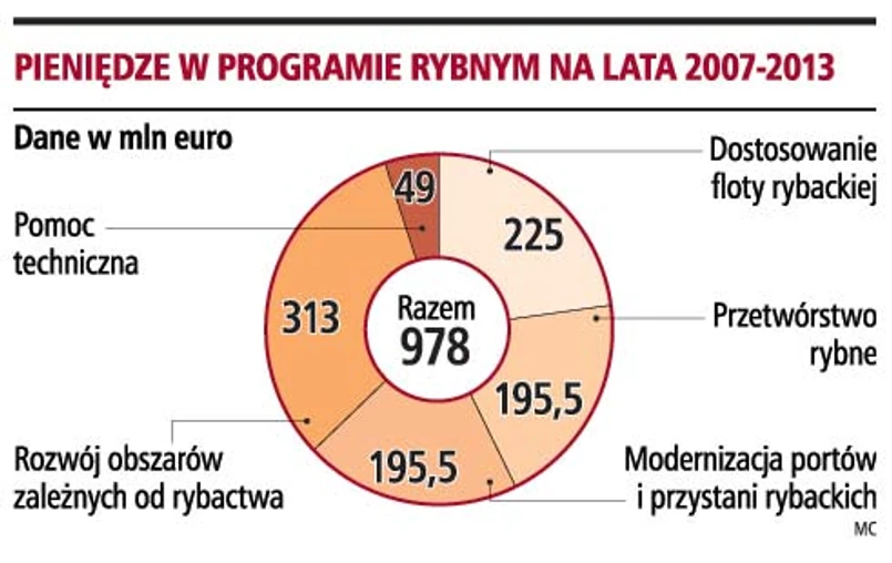 Jednak - jak wynika z ustaleń GP - do regionów mają trafić pieniądze na trudne do wdrożenia działania społeczne, takie jak tworzenie grup lokalnych, w skład których będą wchodzić rybacy, przetwórcy i inne podmioty. Będzie to 313 mln z 978 mln euro, które mają być w programie.