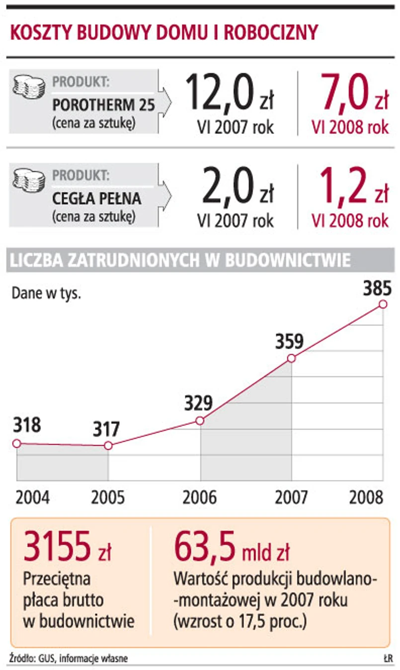 zarobki za granicą nie są już tak astronomiczne. Za to wyższe płace w budownictwie w kraju skusiły wiele osób spoza branży. Od początku ubiegłego roku liczba osób zatrudnionych w budownictwie zwiększyła się o prawie 50 tys. W większości są to osoby dopiero do przyuczenia w zawodzie, ale tak dużego dopływu świeżej krwi w budownictwie nie było od prawie 20 lat.