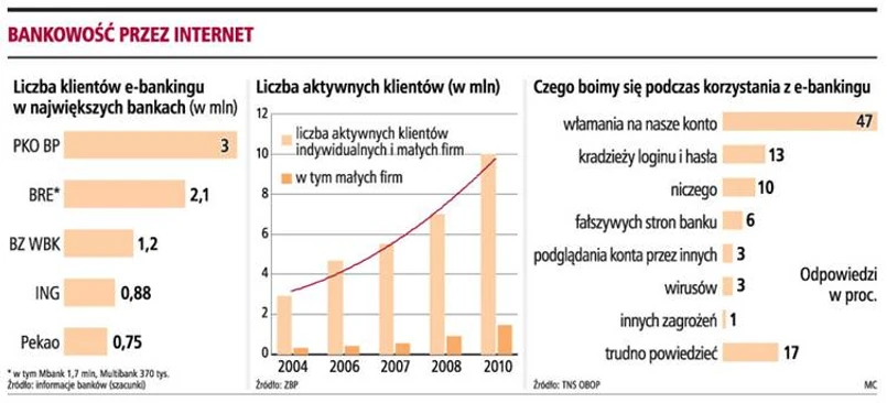 - Ludziom ciężko przekonać się do bankowości elektronicznej, skoro np. media informują o coraz to nowych próbach włamania się na bankowe konta elektroniczne - mówi Piotr Siciak, menedżer w Deloitte zajmujący się rynkiem bankowym. I rzeczywiście, badania potwierdzają, że 40 proc. internautów widzi negatywny związek między popularyzacją e-bankingu a cyberprzestępcami.