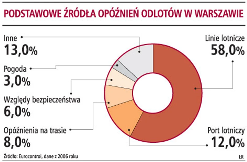 Podobnych danych dla polskich lotnisk nie sposób uzyskać. Dostępne są jedynie dane Eurocontrol, które mówią, że w 2006 roku średnie opóźnienie samolotu startującego z warszawskiego Okęcia wynosiło blisko 17 minut i było o 22 proc. większe niż rok wcześniej. Samolot lądujący w 2006 roku w Warszawie miał średnio 15 minut opóźnienia (wzrost o 18 proc.). Te jedne z najgorszych wskaźników w Europie świadczą, że pasażerowie słusznie odnoszą wrażenie, że liczba opóźnień i ich czas rośnie.