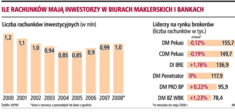 Współpraca z bankami z grupy kapitałowej, akcje promocyjne i przydział akcji pracowniczych sprawiły, że mimo spadków na giełdzie rośnie liczba rachunków maklerskich.