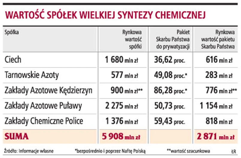Ministerstwo Skarbu Państwa zapowiada przyspieszenie prywatyzacji sektora wielkiej syntezy chemicznej. Szczególne względy zyskał Ciech, którego akcji Skarb Państwa ma się pozbyć w ciągu niespełna 12 miesięcy.