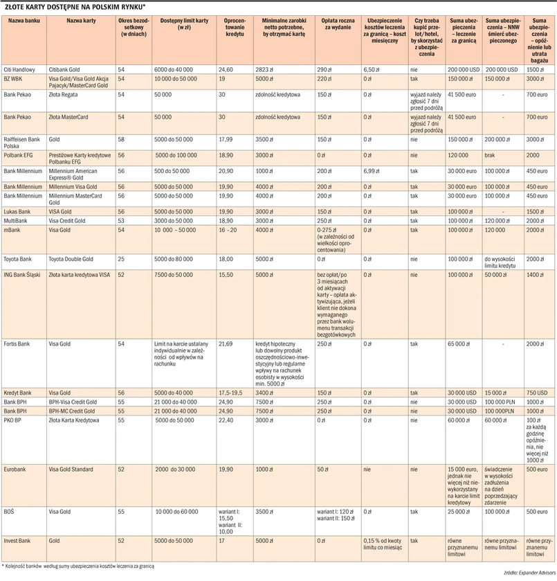 Korzystanie ze złotej karty kosztuje rocznie od 125 do 250 zł (to nawet cztery razy więcej niż opłata za wydanie zwykłej karty kredytowej). Za taką opłatę klient otrzymuje dodatkowe usługi - głównie pakiety ubezpieczeniowe. Jednak nie każdemu posiadanie złotej karty się opłaca.