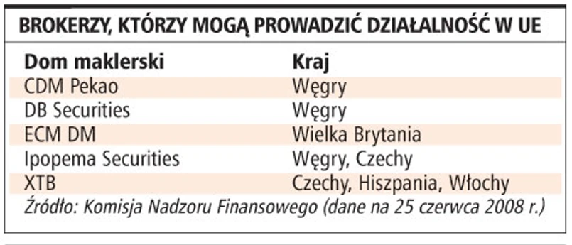 Domy maklerskie odpowiadając na potrzeby klientów często decydują się też na działalność bez otwierania oddziału w innych niż Polska krajach Europy Środkowo-Wschodniej. Od połowy 2005 roku może tak działać na Węgrzech CDM Pekao. Pod wpływem klientów instytucjonalnych broker zdecydował się na członkostwo na tamtejszej giełdzie. To rozwiązanie było tańsze niż pośrednictwo lokalnych domów maklerskich. Bezpośredniego dostępu do tych rynków szuka też Ipopema Securities, która tylko w I połowie 2008 r. uzyskała możliwość działania transgranicznego na Węgrzech i w Czechach. Firma obsługuje wyłącznie inwestorów instytucjonalnych krajowych i zagranicznych.