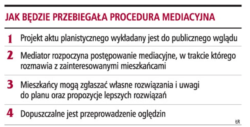 ZMIANA PRAWA - W procedurze uchwalania miejscowych planów zagospodarowania przestrzennego ma uczestniczyć zawodowy mediator, który będzie przekonywał mieszkańców do konieczności powstawania pewnych inwestycji.