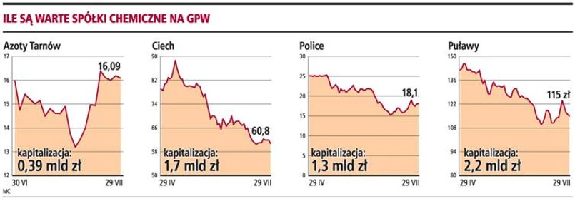 - Jeśli uwierzyć zapowiedziom Skarbu Państwa i założyć, że w najbliższych miesiącach nie dojdzie do załamania koniunktury na świecie, to można grać pod zwyżkę akcji spółki przy jej przejęciu przez inwestora - ocenia Kamil Kliszcz. Kluczowym momentem dla wszystkich spółek sektora wielkiej syntezy chemicznej będzie 10 września, wtedy to Aleksander Grad ma zaprezentować szczegóły konsolidacji i prywatyzacji.