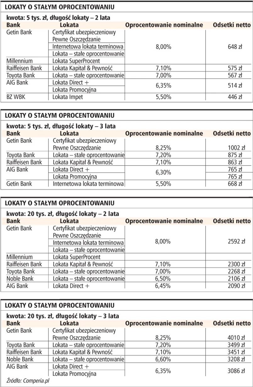 RANKING LOKAT DŁUGOTERMINOWYCH - Na rynku lokat długoterminowych bezkonkurencyjny jest Getin Bank. Deponując pieniądze na trzy lata w certyfikaty ubezpieczeniowe Pewne Oszczędzanie, dostaniemy 8,25 proc. odsetek w skali roku.