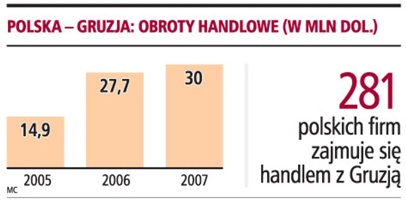 Polska ma 90 proc. nadwyżki w handlu z Gruzją. Z powodu konfliktu w Osetii Południowej polski eksport do Gruzji niemal się zatrzymał.