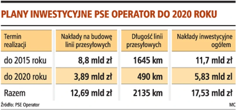 PSE Operator, operator krajowego elektroenergetycznego systemu przesyłowego, planuje do 2015 roku zainwestować 11,7 mld zł. Na budowę 1645 km sieci ma pójść około 8,8 mld zł, a prawie 3 mld zł na inwestycje towarzyszące (m.in. stacje elektroenergetyczne, wymiana transformatorów).