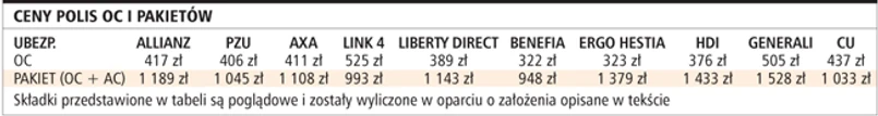 Z przeprowadzonego badania kosztu zakupu wyłącznie pakietu ochrony OC oraz pakietu OC i AC dla konkretnego przypadku (osoba w wieku 26 lat, posiadająca od siedmiu lat prawo jazdy, uprawiona do korzystania z 50-proc. zniżek, pozostająca w związku małżeńskim, posiadająca pojazd marki Ford Focus z roku 2004, o przebiegu 140 tys. km, użytkowany do celów prywatnych, kupiony w polskim salonie, bezwypadkowy) wynika, że rozpiętość cenowa pomiędzy poszczególnymi ofertami jest znacząca i poza aspektem wyłącznie finansowym należy wziąć pod uwagę również doświadczenie firmy oraz jej reputację, co jak wiadomo obiektywnie, porównane być nie może.
