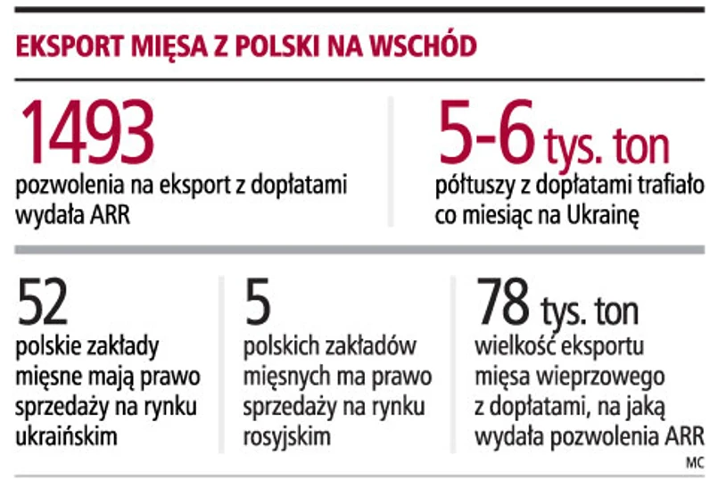 Według danych Związku Hodowców i Producentów Trzody Chlewnej Polus średnia cena skupu z dziesięciu zakładów mięsnych to 5,96 zł za kg żywca. Takie ceny dotyczą jednak tylko wieloletnich umów kontraktacyjnych. Mniejsi rolnicy za żywiec dostają znacznie mniej. Ubiegłotygodniowa decyzja Komisji Europejskiej o wstrzymaniu dopłat do eksportu mięsa wieprzowego oznacza w praktyce wstrzymanie polskiego eksportu półtusz do wschodnich krajów poza granicami Unii Europejskiej. Głównie chodzi o Ukrainę, gdzie trafiało ok. 90 proc. mięsa eksportowanego z dopłatami.