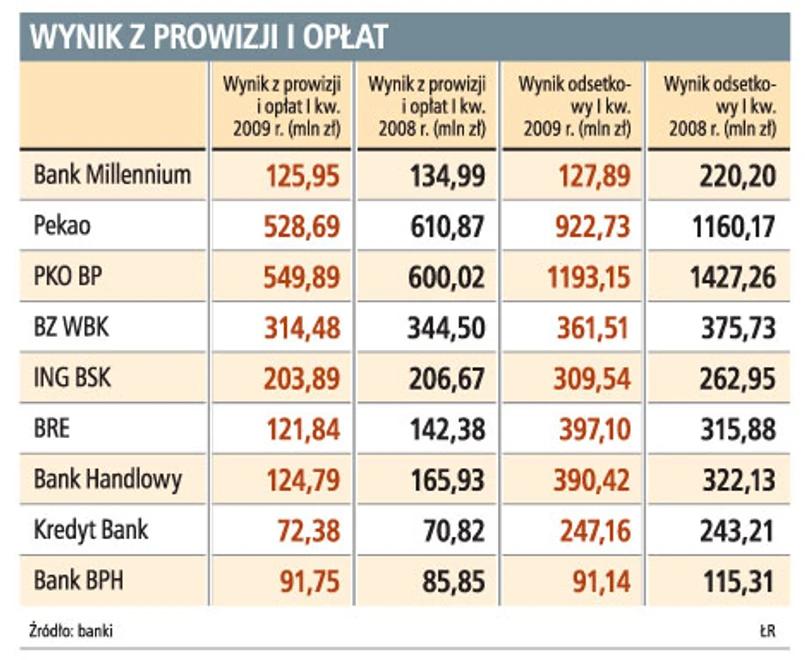 Polskie banki zabierają relatywnie więcej z prowizji i opłat niż banki zachodnie. W Banku BPH i Millennium zyski z prowizji są podobne, jak zyski z kredytów. Największy polski bank PKO BP na prowizjach i opłatach zarobił w I kwartale 549 mln zł.