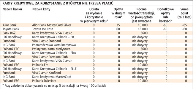 Jest również kilka kart, które również zasługują na wyróżnienie. Co prawda nie przynoszą dodatkowych profitów. Jednak, nawet przy niewielkiej wartości transakcji można z nich przez wiele lat korzystać bezpłatnie. Takie karty posiadają w swojej ofercie: BGŻ – Visa Classic, Polbank – Praktyczna Karta Kredytowa i ING Bank Śląski – Pomarańczowa karta kredytowa.