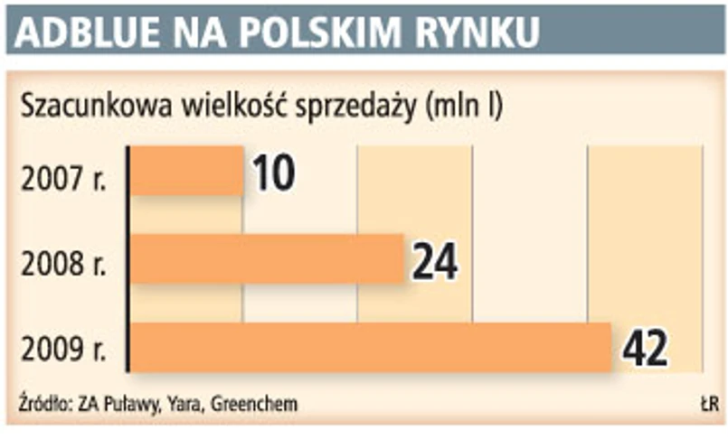 Sprzedaż AdBlue w Polsce rośnie i będzie warta w 2009 roku około 40 mln zł na poziomie hurtowym, mimo że rynek transportowy, od którego jest uzależniona, przeżywa poważne kłopoty.