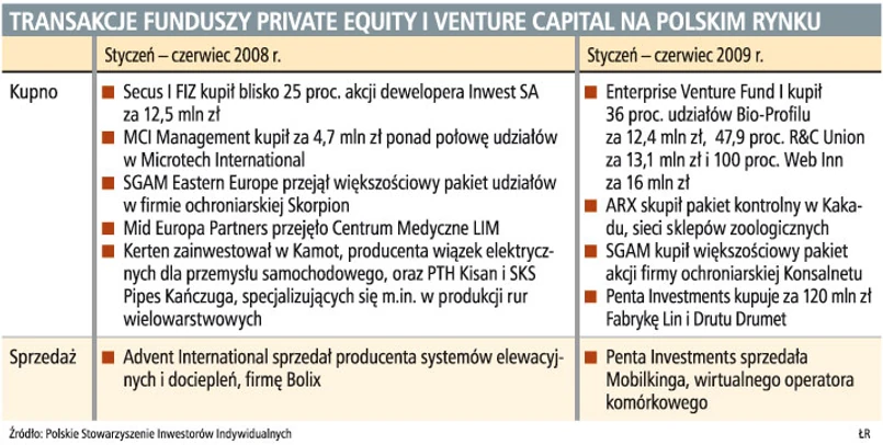 EVF I wyróżniał się w tym roku aktywnością na tle branży. Jego konkurenci zapowiadają jednak, że II połowa roku także w ich funduszach przyniesie wzrost liczby transakcji. Jacek Pogonowski z SGAM Eastern Europe, który na inwestycje w Polsce i Europie Środkowej i Wschodniej ma ponad 150 mln euro, liczy, że w tym roku może przeprowadzić kilka transakcji w kraju i co najmniej jedną w regionie. Konsalnet to pierwszy zakup funduszu od 2008 roku.
