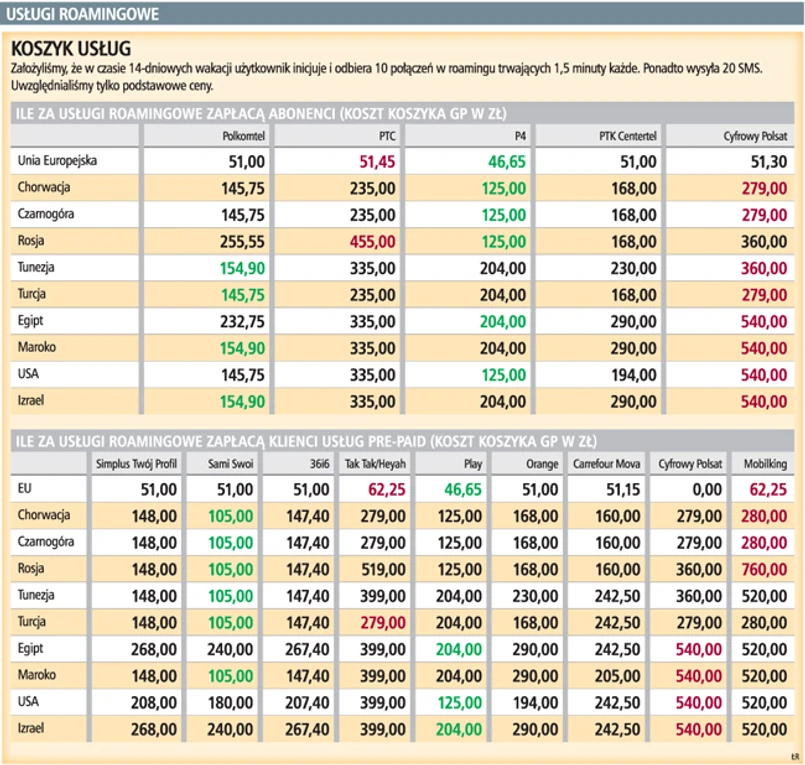 Najwięcej za usługi w roamingu zapłacą klienci pre-paid w sieci Era i Heyah, a także Mobilking i Cyfrowy Polsat. Użytkownicy GaduAir i tuBiedronka muszą pamiętać, że ich operator nie świadczy usług roamingu. Najtańsze usługi w euroroamingu oferuje Play.